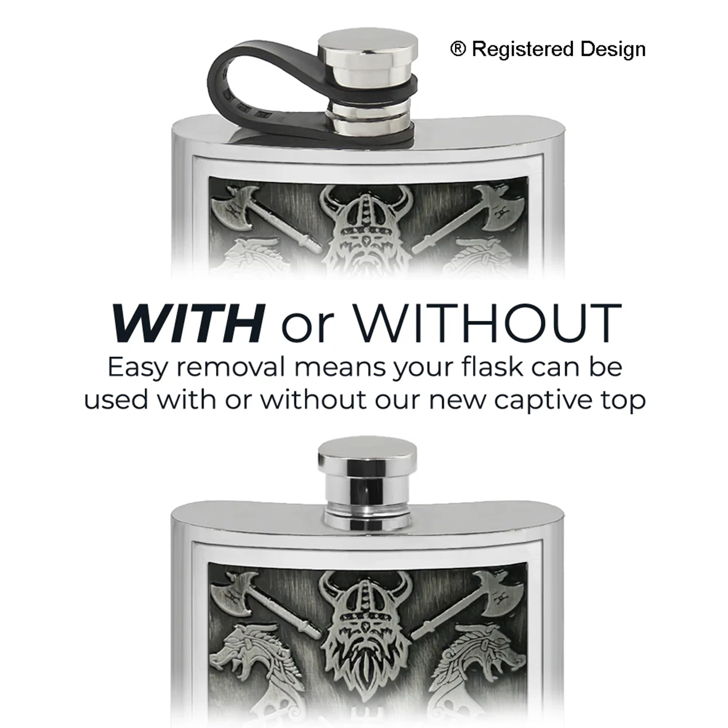 New for this year Carry a piece of myth and legend wherever you go with this striking 6oz Pewter Hip Flask, adorned with a handcrafted "Valhalla" themed badge on its front. Expertly crafted from high-quality pewter, this flask shines with a lustrous finish that ages beautifully, giving it a timeless appeal. The iconic badge on the front depicts a scene inspired by Norse mythology and the spirit of the Viking warriors. The rear of the flask is plain and perfect for the addition of engraving, if desired. The flask holds 6 fl oz or 170ml and is supplied beautifully packaged in an elegant cream and black gift box, complete with a luxury black velvet presentation bag and a silver plastic funnel (with the option to upgrade to a pewter funnel).