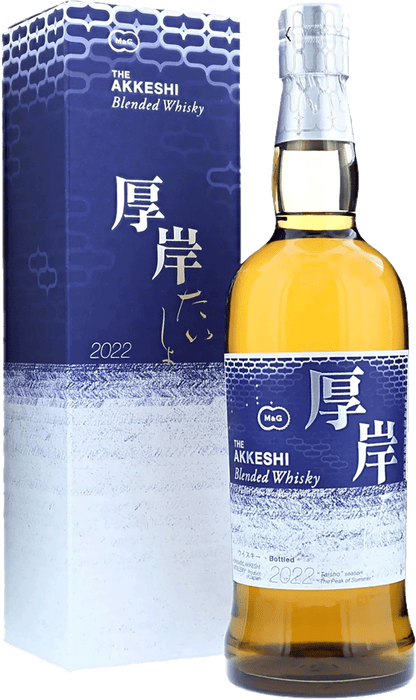 Appearance: Rich amber with golden highlights. Nose: Elegant and balanced, with aromas of dried fruit, honey, and soft peat smoke, complemented by vanilla and oak spice. Palate: Smooth and layered, featuring flavours of caramel, orchard fruit, and subtle umami depth, with a hint of maritime influence. Finish: Long and refined, with lingering spice and gentle smokiness. Overall: A sophisticated Japanese blend, capturing Akkeshi's signature peated coastal style.