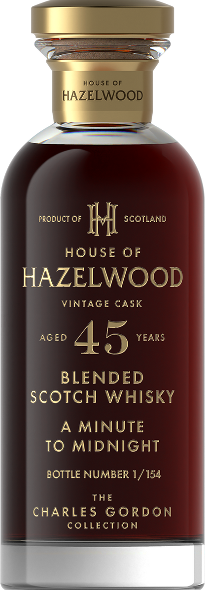This whisky showcases the beauty of combining malt and grain whiskies aged for decades, resulting in a complex, layered experience that’s both rich and approachable. Whether you're a seasoned whisky lover or a curious explorer, House of Hazelwood A Minute to Midnight 45 YO delivers a unique taste of Scotch whisky heritage with a modern edge.