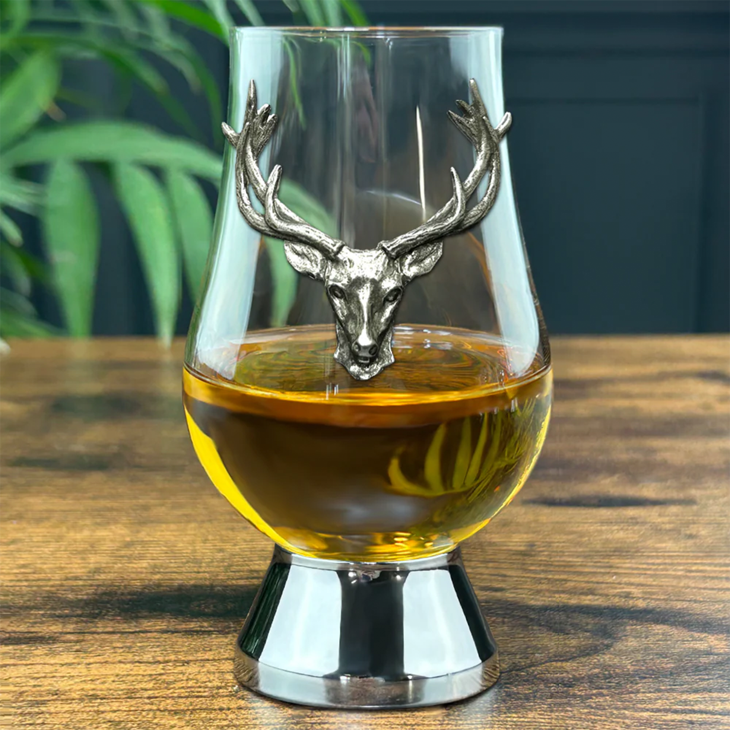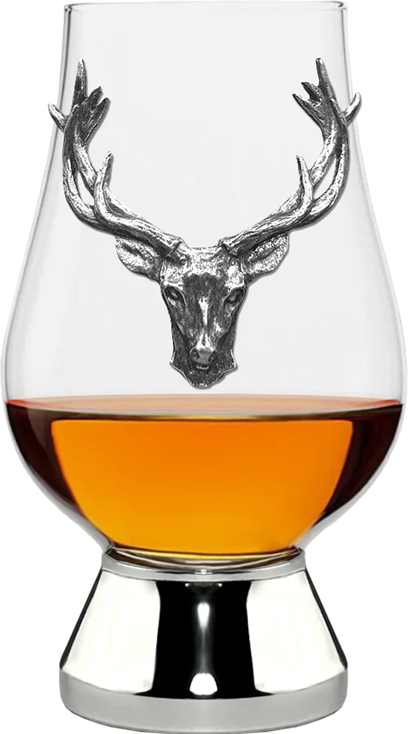 What sets this glass apart? It’s all in the details. The handcrafted pewter base adds a solid, artisanal touch, while the bold pewter Stag Head badge injects a bit of rugged elegance that perfectly complements the crystal’s clean lines. This isn’t just glassware; it’s a statement piece that commands attention on any bar or shelf.